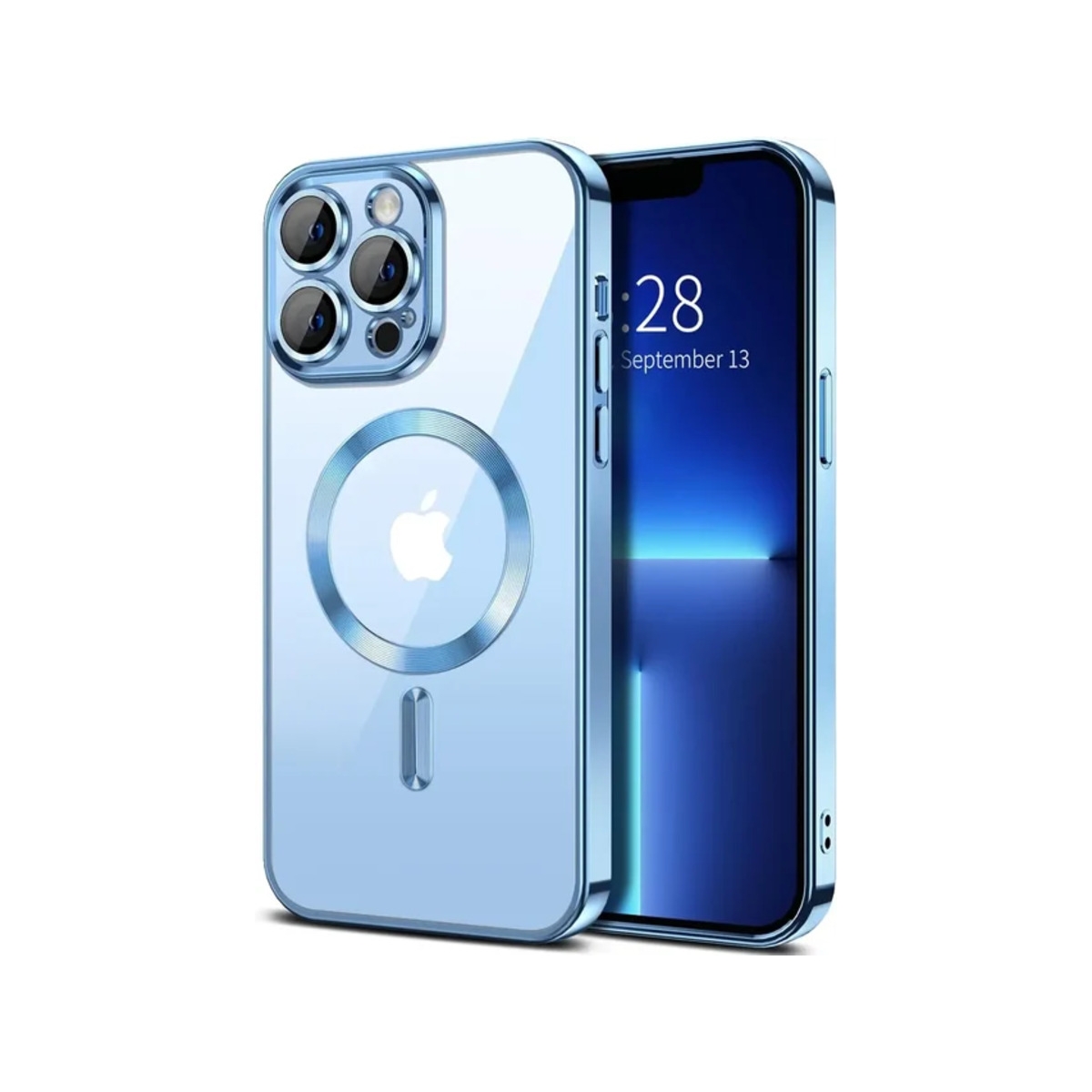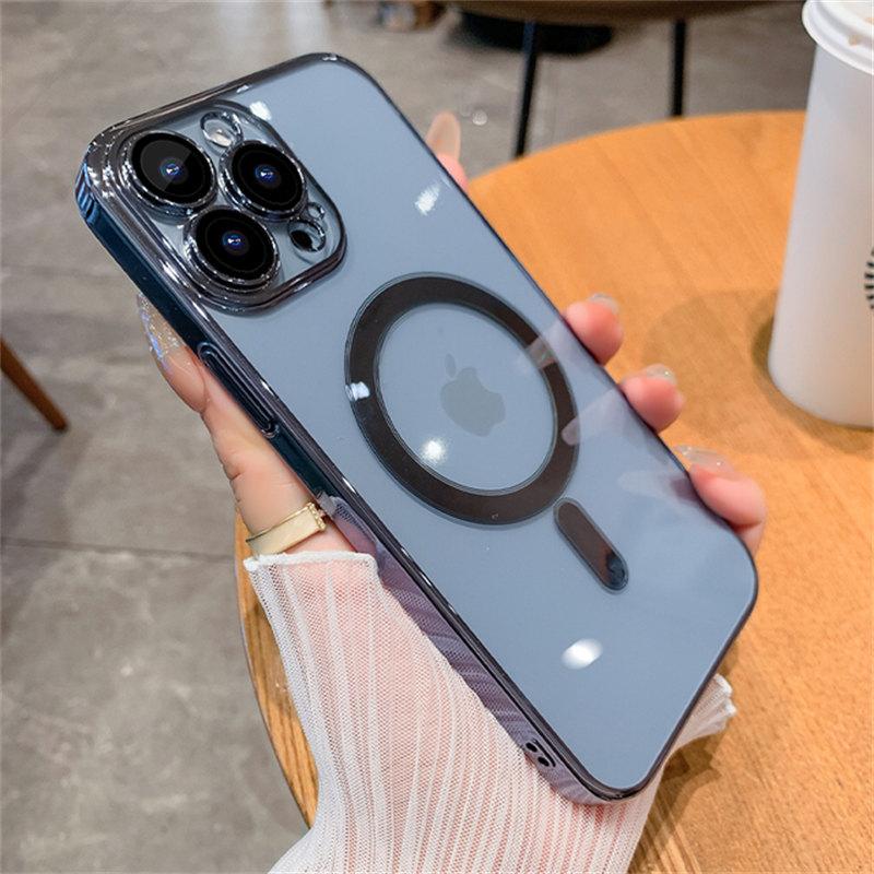 Силиконовый чехол с окантовкой Magnetic Case MagSafe (закрытая камера) iPhone 13 Pro Blue