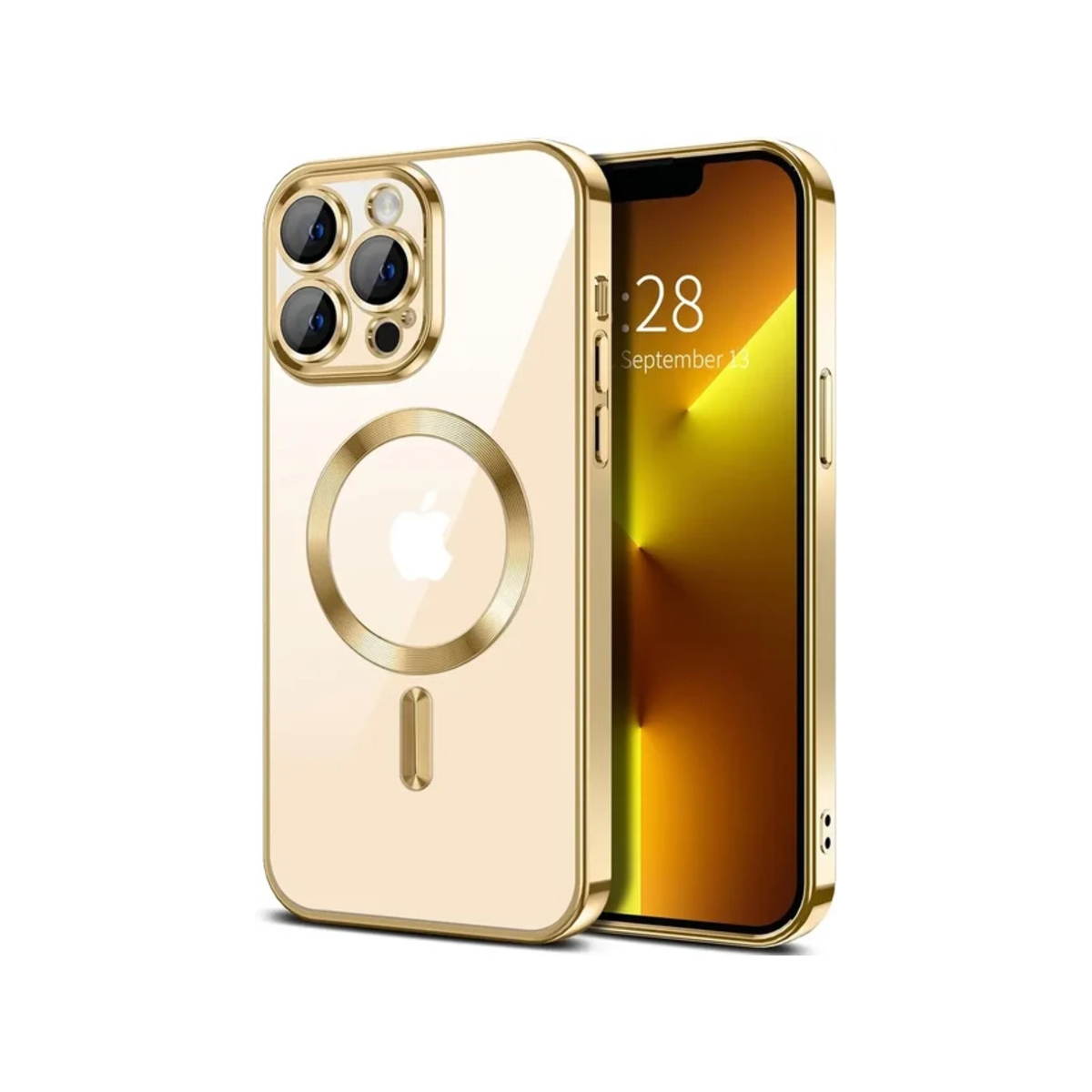 Силиконовый чехол с окантовкой Magnetic Case MagSafe (закрытая камера) iPhone 13 Pro Gold