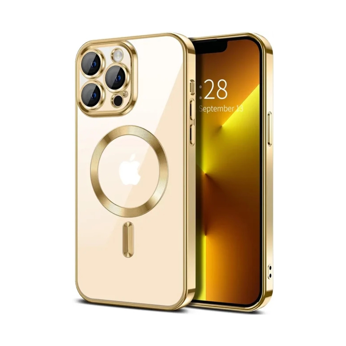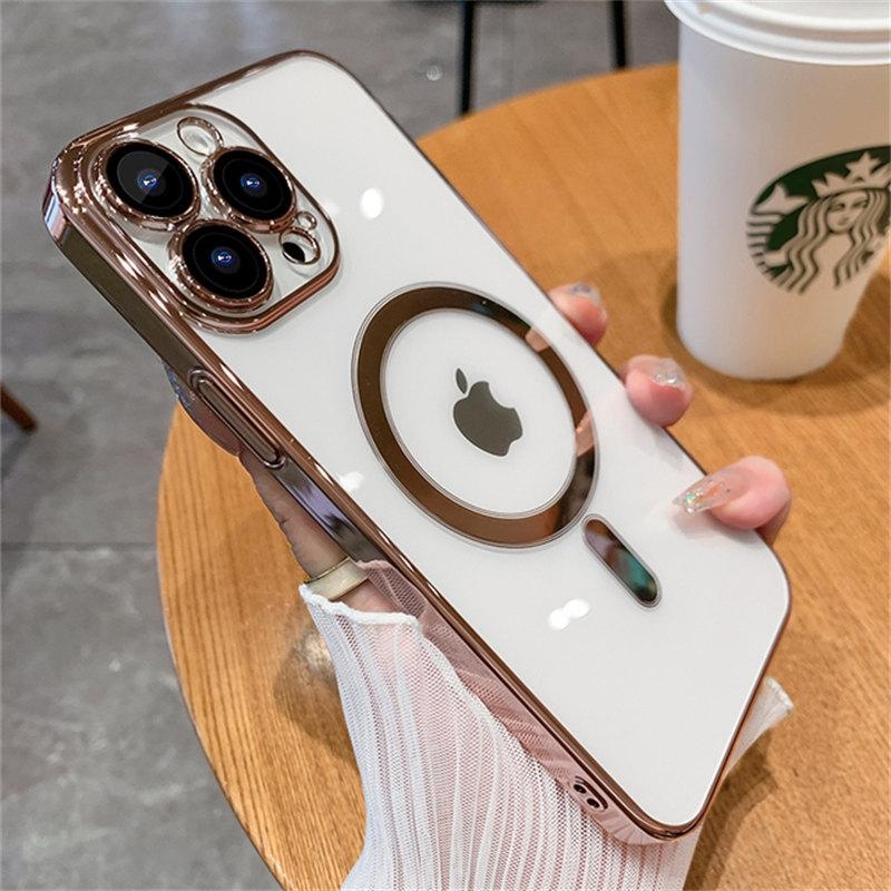 Силиконовый чехол с окантовкой Magnetic Case MagSafe (закрытая камера) iPhone 16 Gold